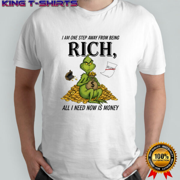 Grinch I am one step away from being rich all i need now is money shirt, hoodie, sweater, longsleeve and ladies t-shirt