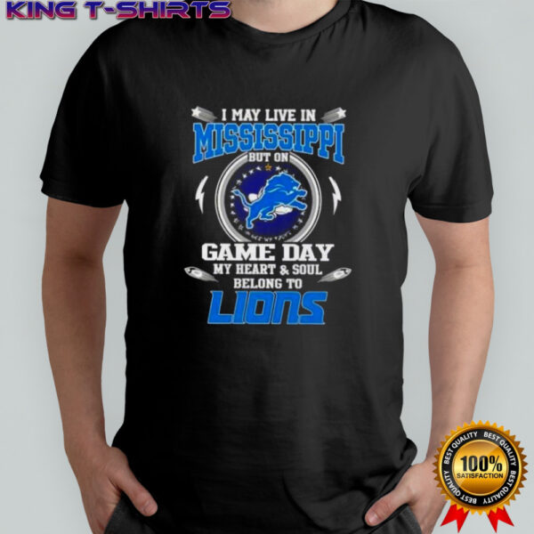 I May Live In Mississippi But On Game Day My Heart And Soul Belongs To Detroit Lions T-Shirt, hoodie, sweater, longsleeve and ladies t-shirt
