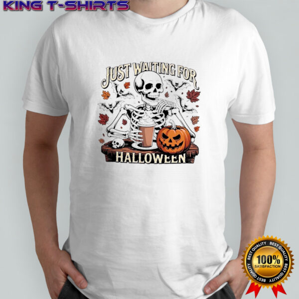 Skeleton with Pumpkin Just Waiting for Halloween shirt, hoodie, sweater, longsleeve and ladies t-shirt